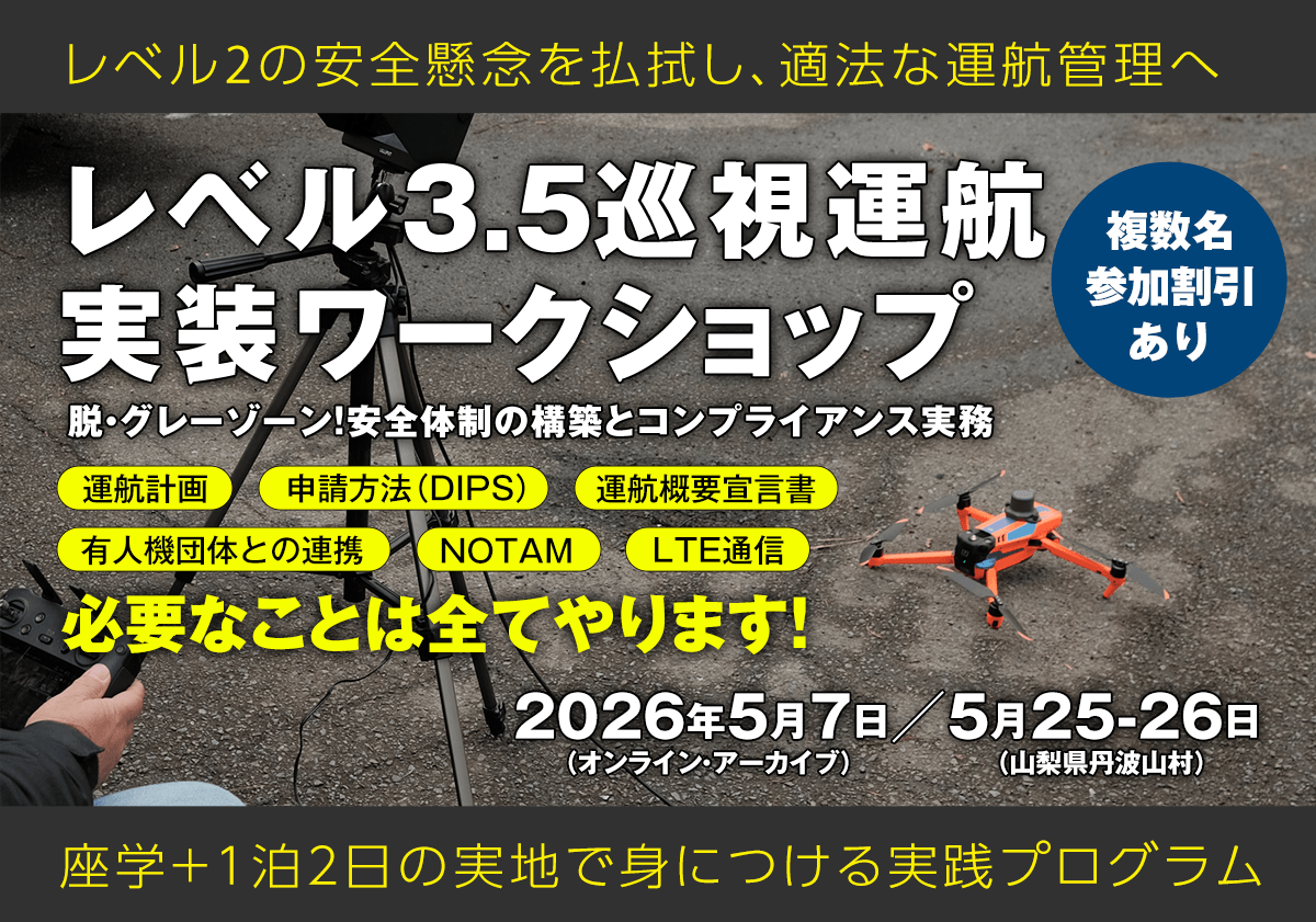 ドローン運航管理/コンプライアンス実務セミナー(Level3/3.5) 「飛ばすことはできる。しかし、適法性・安全対策・事故時の初動に不安が残る」この状態のまま運用を続けると、事故・行政対応・取引先説明で必ず困ることにな […]